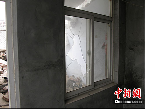 不明身份的人破门而入砸烂的窗户。张鹏翔 摄