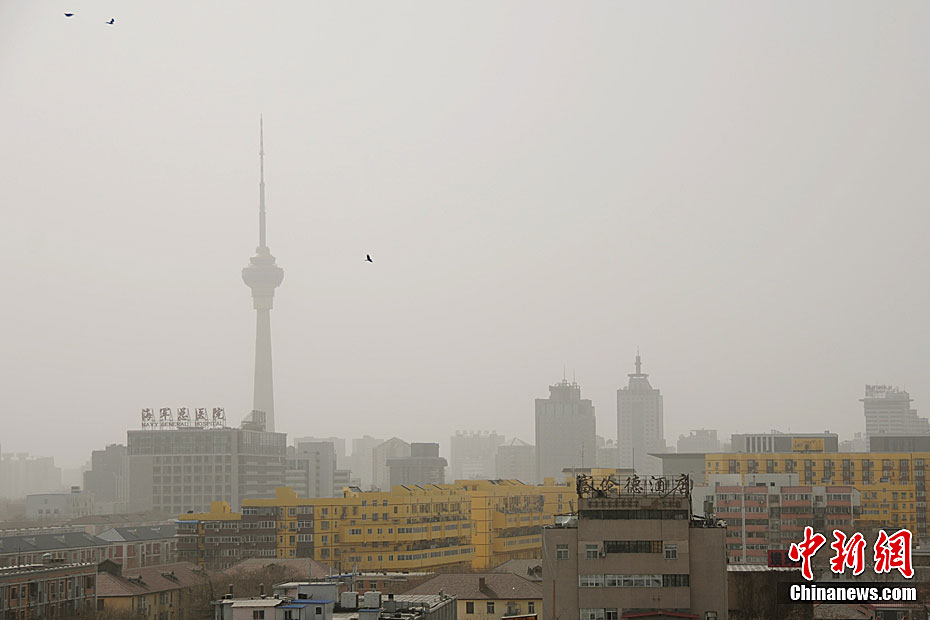 3月18日,京城天空渐渐被“染黄”,这是今年京城出现的首场较明显的沙尘天气。据中央气象台报告,17日起,一股中等强度冷空气开始袭击北方大部分地区,18日一早,本市天空呈现浑浊灰黄的景象。(图片来源:中国新闻网)
