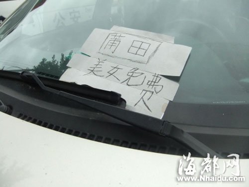 昨天上午9点,福州火车站站前广场,一名20多岁的小伙子,站在一辆价值百万元的豪车旁边,举着一张纸牌:“莆田,美女免费。”