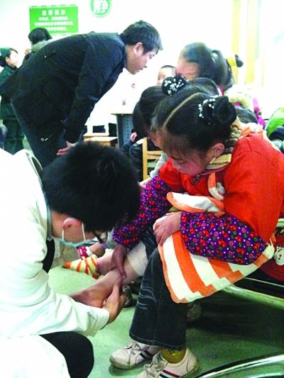 据悉,此次踩踏事故的小伤员共来自四所小学,分别是宁海里小学(25人)、查桥先锋实验小学(17人)、泰伯小学(15人)和育英小学(4人),分别坐落于崇安区、锡山区、新区以及滨湖区。61名伤员中大多数为腿部和脸部擦伤,医院接诊后随即对他们进行消毒、清创、挂盐水、拍片等医疗救治。截至记者发稿为止,伤势较轻的大部分同学在家长的带领下已陆续回家,其中有5名同学需要留院观察,他们均为宁海里小学学生。