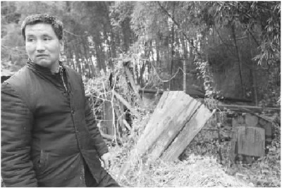 3月25日上午11时30分,贺国辉领着记者来到宁乡县朱良桥村一片竹林前。贺国辉指着竹林深处的空地说:“那里有口棺材,里面装着他娭毑的骨灰咧,哪个敢去看咯。”