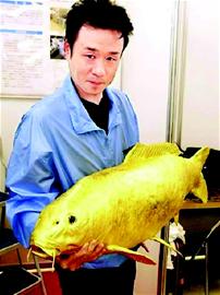 “流言图片里的其实是一只人造机械鱼。”昨日,果壳网“谣言粉碎机”栏目发文《真有含“24克拉纯金”的黄金鱼吗》,澄清了这一谣言。据2003年10月17日《台北时报》的报道,这条“黄金鲤鱼”是日本三菱重工的子公司菱明技研(Ryoumei Engineering)研制的机械鱼,它长1米,重17公斤,在水里能像真鱼一样游动,速度可达0.4米每秒。