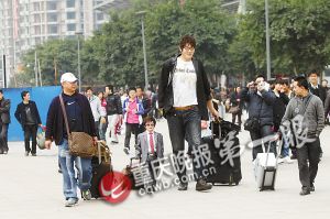 昨日,这一高一矮两个男人现身重庆龙头寺火车站。