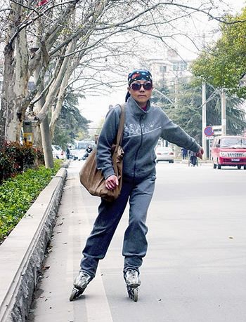 上下班常被堵在路上,骑自行车、电动车又怕偷,不少上班族有这个烦恼。但青山120社区的“潮大姐”,比起坐公交、骑车的同事,出门晚,回家早,又不费心思防盗——她滑轮滑上下班。“潮大姐”王桂香,今年47岁,武钢冷轧公司职工。昨天,记者在120社区找到她时,她正准备上班,戴着花头巾、墨镜,一身运动装,脚下生风,“呼呼”向武钢大门滑去。王桂香2004年开始学轮滑。当时她看到媒体报道,不少六七十岁的爹爹婆婆都练成了轮滑高手,“咦,我年纪比他们小多了,可以玩得更好。”为了练会轮滑,她混在少男少女中间,在溜冰场“偷师”,跟头不知道摔了多少,终于学会了“倒滑”、“单飞燕”、“马蹄步”等不少花样步法。