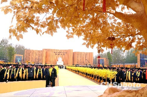 资料图:2010年4月16日(农历三月初三),庚寅年黄帝故里拜祖大典在河南新郑市举行。当日,来自海内外的两万多名嘉宾欢聚于此,共拜轩辕。 中新社发 刘书亭 摄