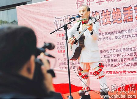 边唱边跳,同时用口琴、沙锤、吉他、铃鼓伴奏,你会不会觉得需要一个乐队才搞得定?日前,在青山举行的一场民间艺人秀绝活的演出中,73岁老人姚应祥表演的“一心六用”,让不少街坊大开眼界。