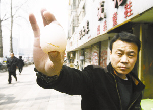 据张先生讲,3月14日上午,他路过煤机街原农贸市场附近时,看到一男一女卖鸡蛋。摊主宣称这些都是双黄蛋,售价为3.8元一斤。喜欢吃腌鸡蛋的张先生便买了七八斤带回了家。当天,张先生就将十余枚鸡蛋腌了起来。
