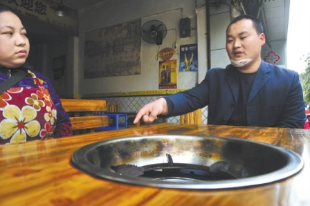 那天晚上11点过,我和老婆带着侄儿到为民路的一家牛杂火锅店吃饭。刚吃一会儿,一个男子走进来,在店里晃了起码10分钟,始终不坐下。