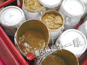 前日上午,云阳县云江大道重百大楼南侧,一个掏粪工在粪池边上掏扒生活残渣,他把这些生活残渣拿去做什么?云阳县双江镇第二派出所民警闻讯跟踪这个掏粪工发现,他掏出来的竟是地沟油,准备运往土作坊加工后,到市场上销售。
