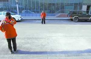 周末的西单大悦城露天停车场车辆稀少,停车管理员左顾右盼希望有“生意”