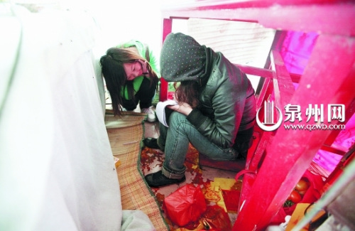 小女孩一直躲在佛龛的桌子下(图片来源:东南网)