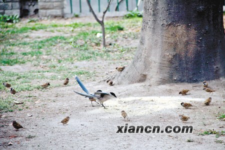 为了见到这三位老人,记者4天前匆匆赶到革命公园,一打听才知道,3位老人每天一大早来给鸟儿喂食,而当时已近中午,老人们早已经“收工”了。次日,记者清晨7点多又来到公园,不料“鸟奶奶”、“鸟爷爷”们来得更早,还是未能见到他们。昨日早上6点多,记者早早在公园门口守候,终于见到了这3位远近闻名的“都市喂鸟达人”。
