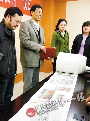昨日上午10点,三峡博物馆接待室,宋文夏老人亲自操刀,剪开方形包装纸,露出一卷直径半米的长卷。“三峡工程相关报道资料长卷宽30厘米、长120米,搜集了上万幅各大媒体图片报道。”宋先生介绍。
