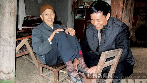 4月6日,记者来到都安瑶族自治县百旺乡琳琅村,被86岁的韦凤珍和继子女之间超越血缘的爱所深深感动。22年前,盘愿军和弟弟妹妹们主动为鳏夫父亲搭桥牵线,将继母娶进家门;6年前,父亲去世后,他们一如既往地孝顺继母,在当地传为美谈。