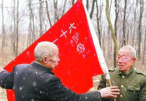 李忠年与李夏春准备了一面写着“六十一个阶级弟兄”的旗帜,以便为来访者和慰问者讲述当年的故事。