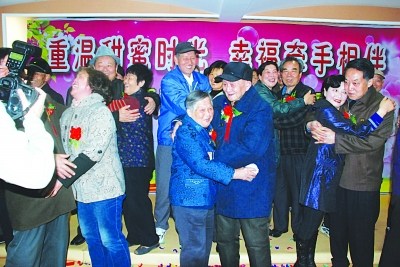 昨天来现场的全部都是婚龄超过30年的夫妻,其中婚龄最长的方正明和田圣英是“钻石婚”,分别83岁和82岁,他俩已经携手走过了整整60年。居民们说,他们就是电视剧《金婚》里的佟志和文丽,因为他们兑现了那句“执子之手,与子偕老”的誓言。