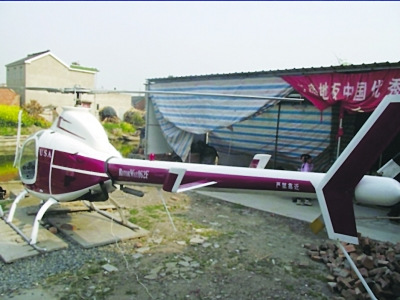 停在兴化农家院里的直升机。“喜羊羊”提供