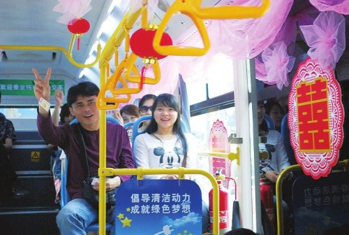 在活动的出发点,4辆装扮一新的“情缘巴士”格外亮眼。这几辆电动空调公交车由内至外都进行了精心装扮:车外贴上了几个大红喜字装点车身,车内用粉色丝绸扎成的花球布置着。宣布活动开始后,单身男女分批登上“情缘巴士”。上车时,他们向投币箱中放入一份“爱情宣言”,一段寻爱旅程随即展开。
