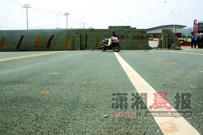 前天晚上8点,陈俊骑摩托车经过此地,连车带人撞破了墙,“飞”出5米开外,经抢救无效死亡。前天晚上9点50分,益阳的陶红辉接到了长沙交警打来的电话,说她老公陈俊发生了交通事故,撞在一堵横在路中间的墙上,墙撞穿了,人也死了。