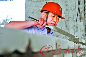 右手握的是刀,寒光闪闪,铿然有声,江湖上俗称“灰刀”;左手握的是盾,平整坚韧,上挡下拦,江湖上俗称“灰池”,只是这刀并不浴血,而是翻飞于砂浆之间,而这盾也并不挡箭,却专门在砖墙上左荡右平。老王,手持这两件“独门兵器”,纵横砖坛30余载,罕逢敌手。