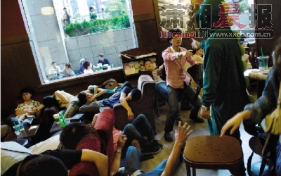 “杀人了!”昨日下午,长沙星巴克东塘店内的座位被百名相约而来的网友相继“霸占”。2点55分,网友们趴在桌子上,一起进入“梦乡”,5分钟后,网友们逐渐醒来,并继续若无其事喝着咖啡。