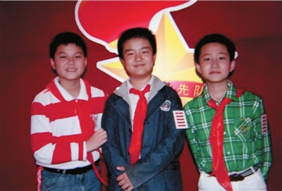 黄艺博博客上贴出的与少先队“同事”的合影。实习记者赵恩泽翻拍