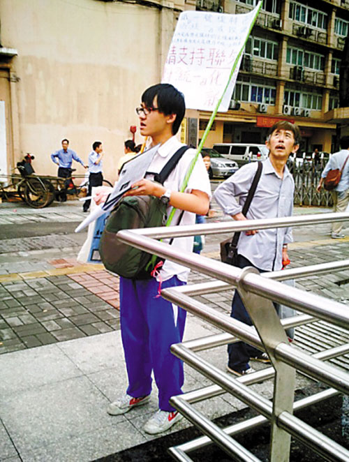 穿着校服,举着横幅,利用放学时间在地铁口收集市民意见,对地铁一号线车站翻新工程提出批评———近日,广州一名中学生在新浪微博上一“举”走红。羊城晚报记者经过多方寻找,发现这名“横幅哥”就是本版《地下铁接龙》栏目第260期的“主持人”、来自广州某中学的陈同学。
