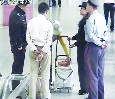 5月6日上午10点半左右,南京地铁公安分局元通站派出所民警池海霞正像往常一样在辖区小行站点执勤,发现一男一女两人推着一辆小手推车准备进站乘车,由于两人携带的东西比较多,池警官随即上前要求对方将包裹打开进行检查。