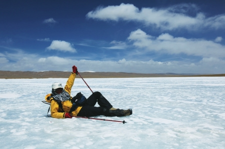 深蓝冰面行走