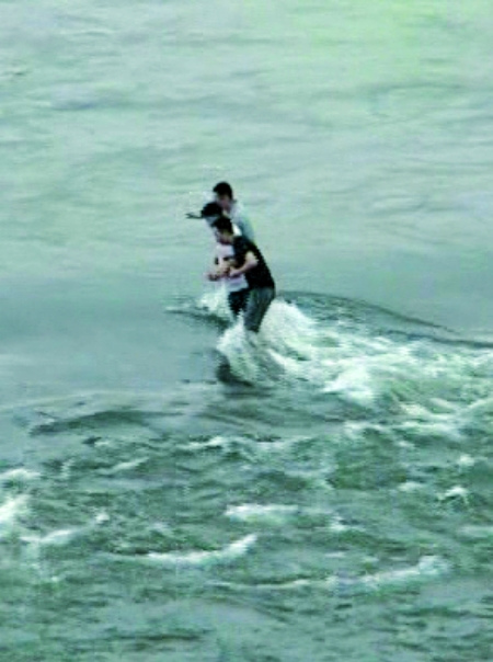 5月10日,一男子和朋友开车到嘉陵江北碚码头江边玩耍。由于车脏,车主索性将车从一条便道开到了江心洗车。谁知,江水猛涨,很快将车轮淹没。江边玩耍的市民纷纷帮忙推车,江水越涨越高,车主和两朋友不得不弃车,手挽手从湍急的江水中艰难地逃上岸。