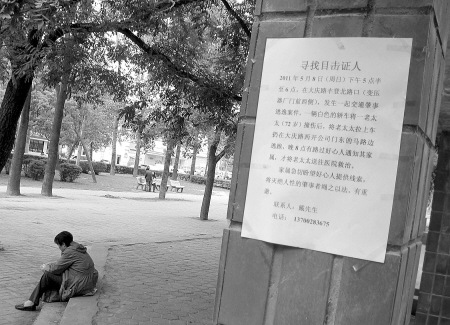 戴先生在街头贴出启事,寻找车祸目击证人。