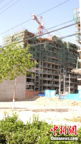 来自四川省资中县的农民工熊禄超16日向记者介绍,今年2月21号,他和40多名老乡在一小包工头的组织下来到曲阳县“阳光家园”工地,在4号楼和3号楼从事木工和钢筋工工作,施工方为他们临时租赁一家养鸡场作为栖身之所。两个多月的时间里,工地上有的楼房已经盖的超过了10层,他们也领到了50万元工资,尚欠约30万元。5月7日,“阳光家园”在建楼房突然被曲阳县国土局贴上封条,然后被断电。民工们则被开发商和施工方负责人告知暂时“放假”回家,但无人出面解决剩余工资。因担心开工遥遥无期,有20多名农民工决定留下来讨要剩余的工资。