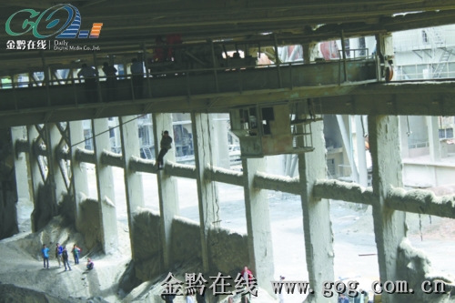 5月16日下午,贵阳市花溪大道中段原贵州水泥厂厂区内,一名男子进入废弃厂房捡拾废铁,右脚不慎被输送水泥的航车轧断。男子随后被困在距离地面15米高的航车轨道上。