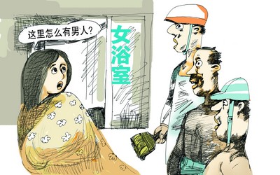 一名女子赤身裸体在浴场洗完澡后,却发现澡堂另一边竟有几个上身赤裸的男人!昨日上午,感到精神受到严重损害的谭金(化名)来到长沙市消费者委员会办公室,希望为自己的隐私被“曝光”讨一个说法。据了解,在长沙洗浴场所,这种事情非常罕见,但其他纠纷则时有发生。长沙市消费者委员会负责人提醒,消费者在洗浴场所消费时要多留个心眼,要保留手牌等证据材料,这样一旦发生纠纷可方便为自己维权。