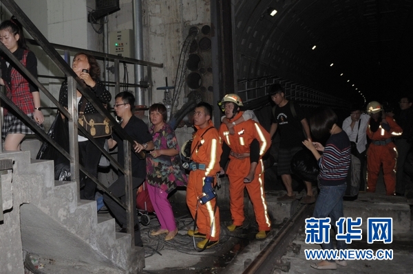 9月27日,救援人员在上海地铁十号线事故现场疏散乘客。新华社发(钮一新 摄)