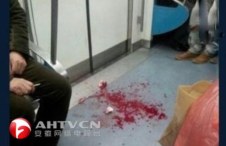 网友发图称,地铁列车上,一名脸部被划伤女子的血迹。