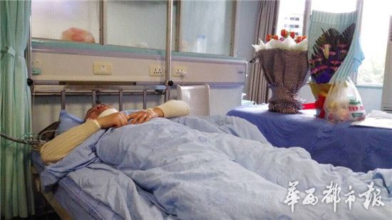 在德阳市人民医院骨科,吴建强躺在病床上,脖子不能随意转动,身体也不能自主翻转,说起被打的遭遇,显得很无奈。