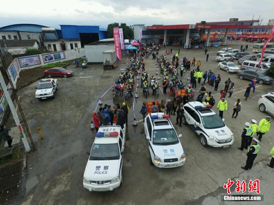 2月1日,距离春节还有一周,在广西贵港市火车北站,300名“摩托大军”搭乘动车从广东的广州、肇庆等地出发返回家乡。返乡大军的129辆摩托车,已于1月30日通过货运专列运抵贵港,工作人员从火车货运站将摩托车转运至贵港市大圩镇一加油站。在此为摩托大军的“铁骑”免费加满油后,贵港市交警部门分三路以警车带路,护送返乡人员骑着摩托车完成最后一段路。黄威铭 摄
