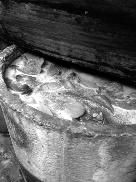 上午,华商报记者随泾阳县公安局治安大队、泾阳县市场和质量监督管理局工作人员赶到这个作坊。作坊位于一处民房后院的几间简易房内。院子内的墙根下堆放着数十袋冰冻的猪肚、猪心、猪肝。两个圆柱形水泥罐内存放的猪肝已长满了绿色霉点,散发臭味。包装完好的猪心上显示产地是美国弗吉尼亚州,有的已经过了保质期。