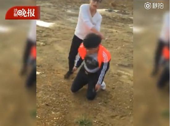 近日,一条暴力视频流传网络,视频中一名20岁左右的男子被迫跪在地上,3名同龄男子将其围住,其中两人对其轮番殴打,掌掴、踢打,白色T恤男子下手尤为狠重,几次将其打倒,踹在脸上。被打男子一直示弱,连连道歉。(记者 温如军)