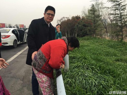 李征琴所乘的车辆突然停下,李征琴下车后,扶着高速护栏向外呕吐。