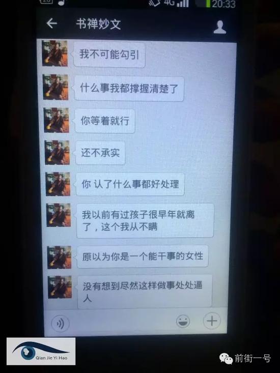 在妙文和尚与伯寒的微信聊天记录中,伯寒的话也能得到佐证。妙文法师在两人发生争执时说:“没有人强迫你到寺院xx”,“只要你和我确实能过也好”,“我说过无数次,我们没有结果”。