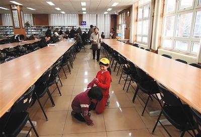 2011年3月26日,北京八中,一9岁女孩报名少儿班,她的妈妈在咨询报名,她和弟弟在玩耍。 韩萌 摄