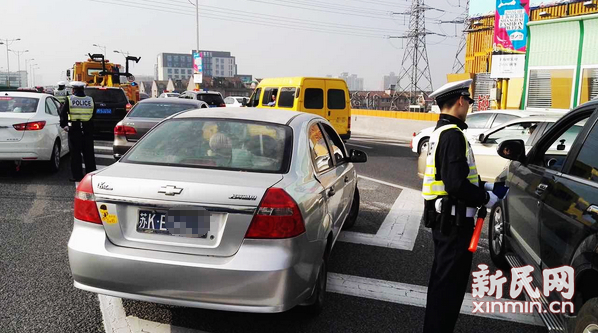 图说:高架限行新规实施首日 新民晚报通讯员袁煜 现场拍摄