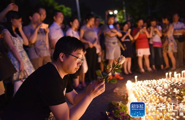 当日中午,遇袭的广东省人民医院口腔科主任医师陈仲伟,经全力抢救无效不幸辞世。当天晚上,广州市民自发组织在广东省人民医院门口和医院附近的英雄广场进行悼念活动。 新华社记者 卢汉欣 摄 图片来源:新华社客户端