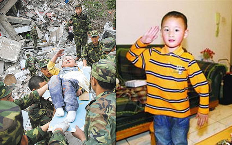 【郎峥:“敬礼娃娃”健康成长】2008年,才3岁的郎峥在汶川大地震里经历了人生最痛苦的时刻,但他在被救援人员从废墟里抬出来的时候,满脸伤痕的他却不忘给解放军叔叔敬礼。郎峥的这个细节动作感动了国人,他也被称为“敬礼娃娃”。据了解,郎峥已经从地震的阴影里逐渐走出,现正在绵阳东辰寄宿制小学读书。在2013年芦山地震的时候,郎峥还参加了学校组织的捐款活动。