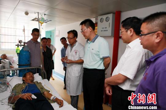 当地官员在医院看望慰问受伤民众。 蒋雪林 摄