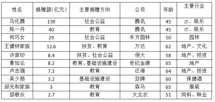 《2016胡润慈善榜》前十名慈善家