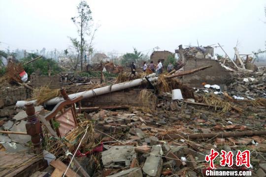 23日中午,江苏盐城市阜宁、射阳两地突遭龙卷风、冰雹、雷雨大风、短时强降水和强雷电等强对流灾害天气。突如其来的旋风将树木、电线塔、房屋纷纷刮倒在地。鸡蛋大的冰雹砸中人们和停在马路上的汽车,报警器的声音和人们的呼救声乱成一团。