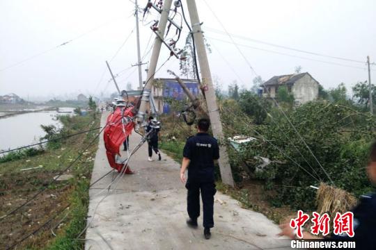 树木、电线杆和建筑被短时强风一下刮倒。 谷华 摄
